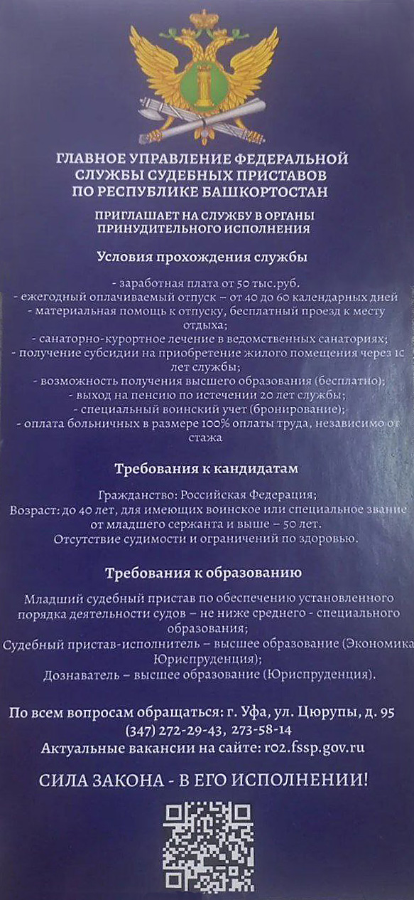 Обращаться по адресу: г. Уфа, ул. Шафиева, д. 46/1 (остановка транспорта «Юношеская библиотека»), отделение кадров.
